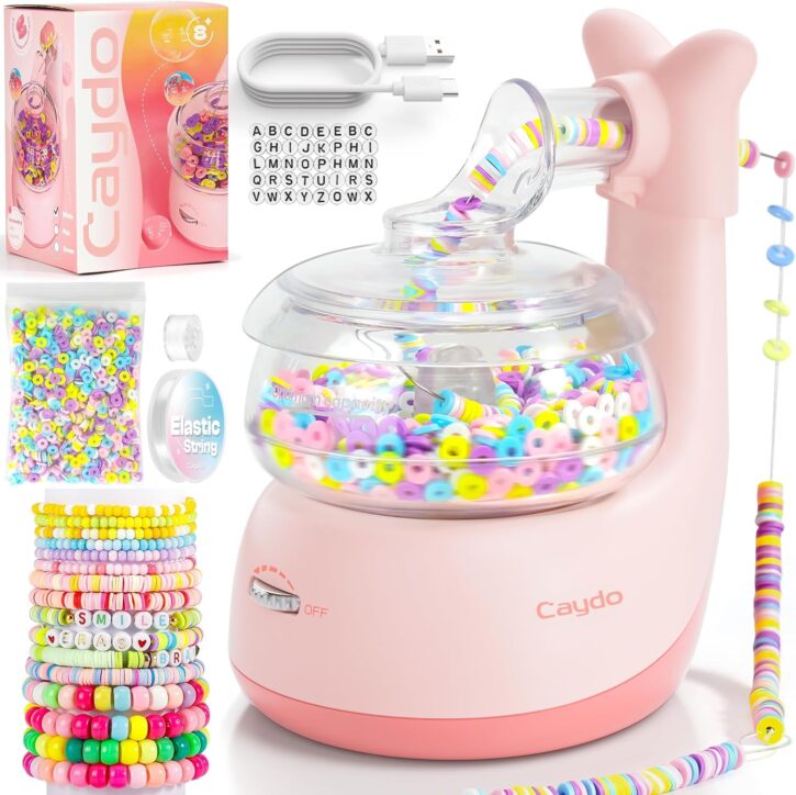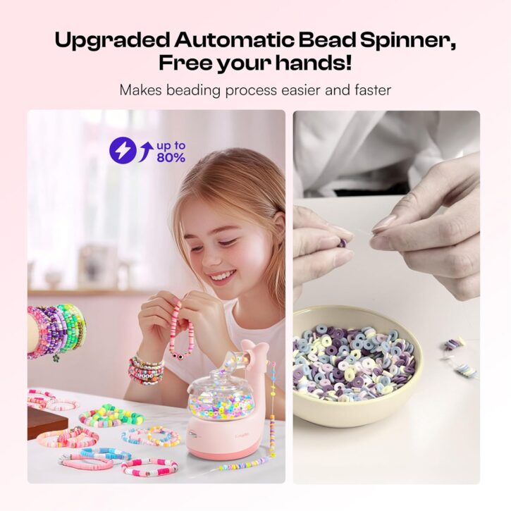 Free Your Hands & Save Time: The Caydo Bead Spinner uses automatic electric spinning to effortlessly string beads onto the needle—no more sore fingers or tedious hand threading! Simply hold the needle steady, and the spinner does the work for you. Perfect for making clay bead bracelets, friendship jewelry, and DIY crafts in minutes!