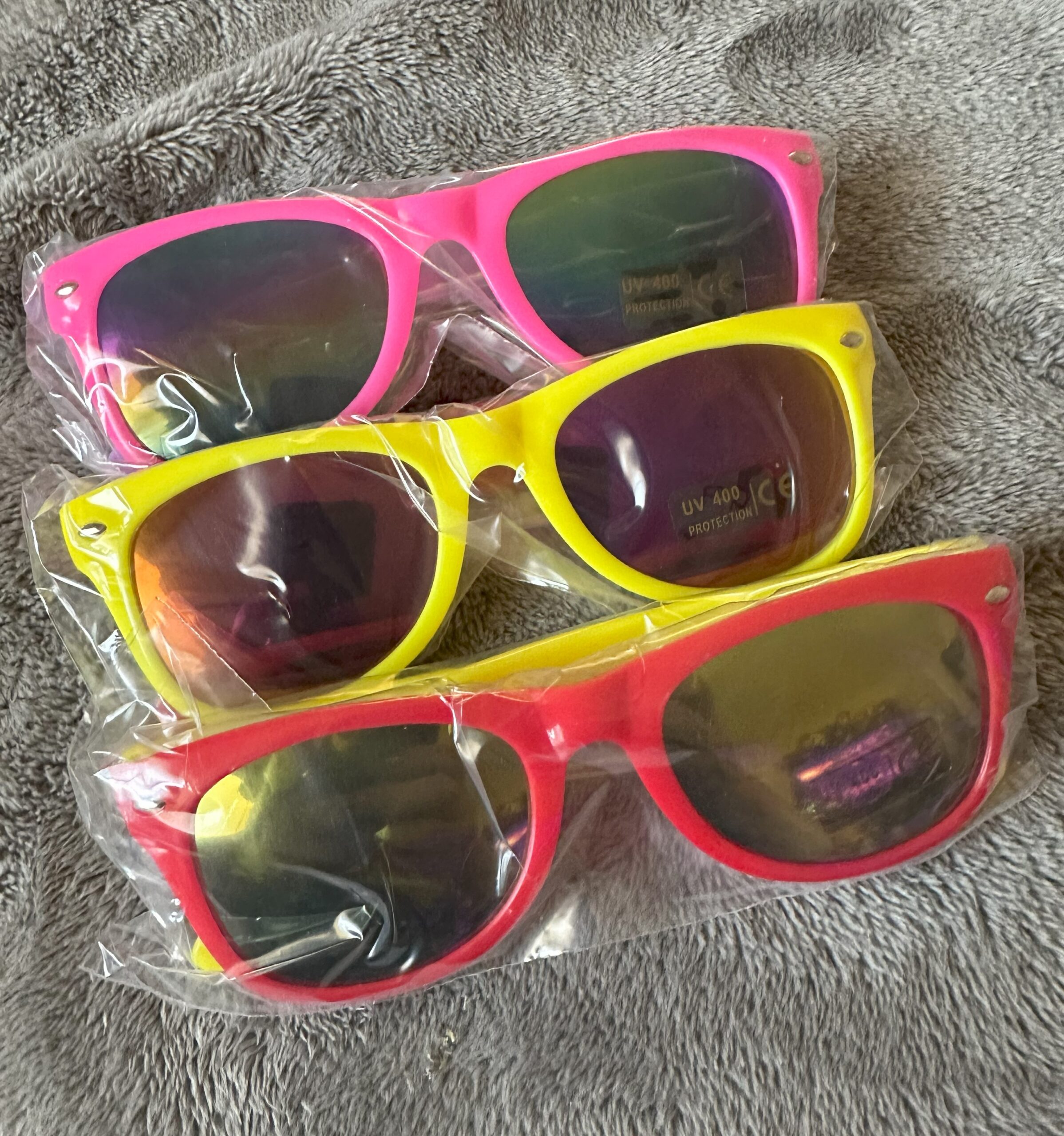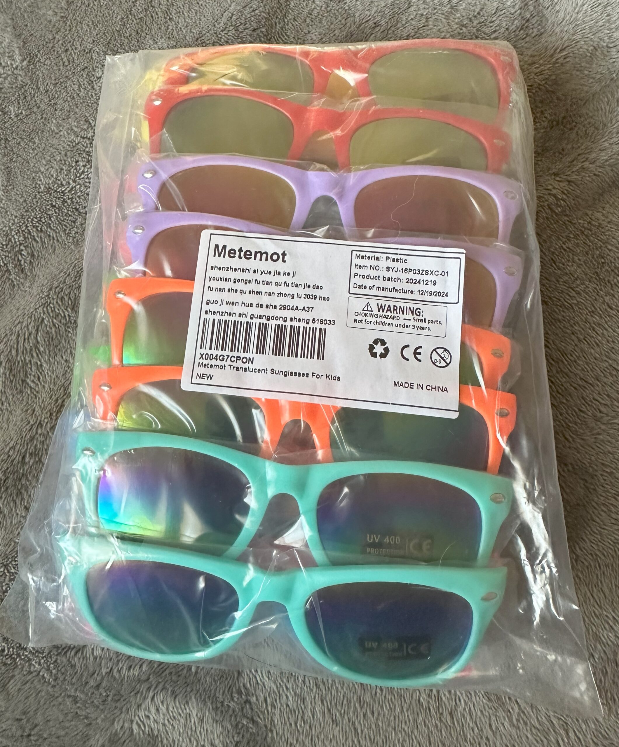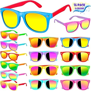 Metemot kids sunglasses party favors for kids 4-8 & 3-5 feature six kinds of vibrant lenses that reflect stunning, eye-catching colors. These toddler sunglasses show different colors in different sunlight conditions, ensuring your child looks effortlessly cool. Perfect for any summer party occasion, these kids party favors are designed to make both girls and boys stand out with style.